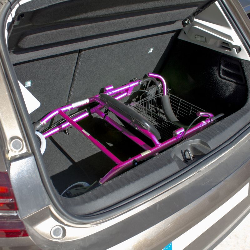 - Posee una cesta para la compra que puede colocarse debajo del asiento o en la parte frontal del andador.