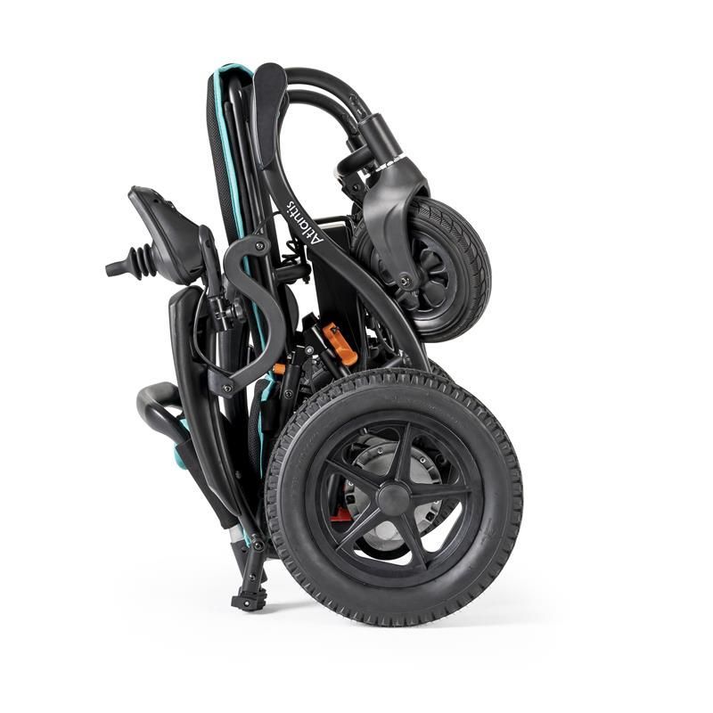 Silla eléctrica I Atlantis plegada con diseño compacto para facilitar el transporte y almacenamiento.