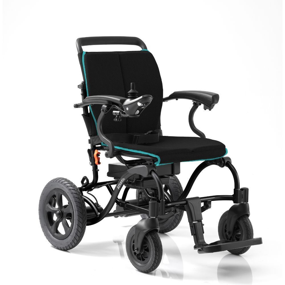 La silla eléctrica I Atlantis pesa 24,9 kg con batería y 22,8 kg sin batería, gracias a su estructura de aluminio ligera y resistente.